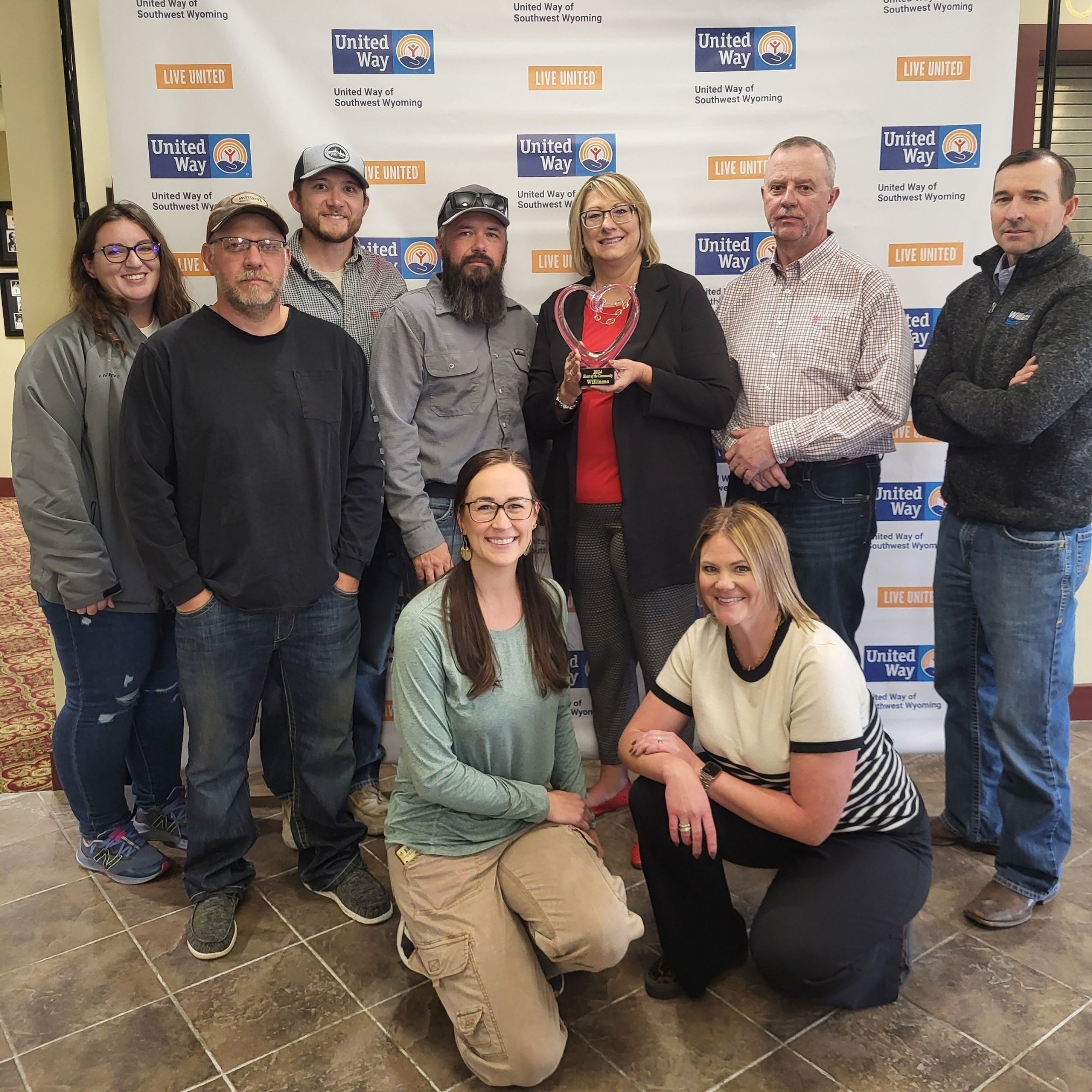 Heart of the Community: Williams and its employees were awarded the 2023 Heart of the Community Award for their exemplary commitment to corporate responsibility through matching employee donations and organizing impactful employee-led fundraising events. Pictured back row: Ashley Kelly, Billy Ourada, Austin Nishi, Cody Orcutt, JoAnna Robinson, Shawn Whitmore, and Warren France. Front row: Andrea Graves and Chelsie Devish.