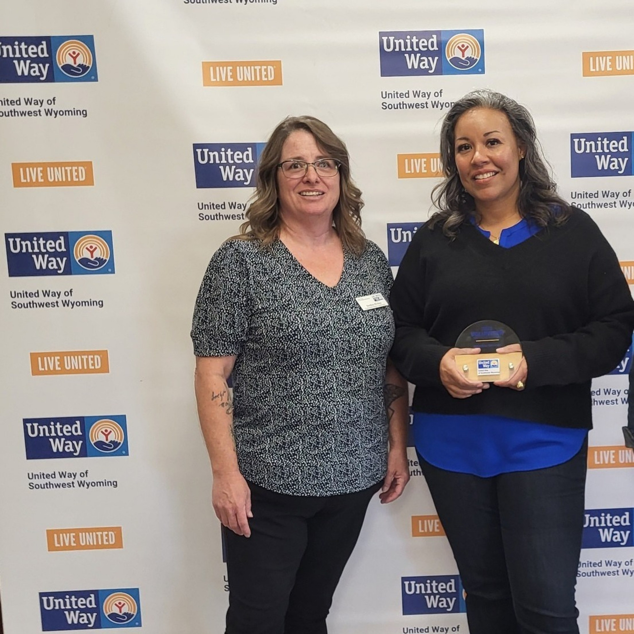 Volunteer Award: Angelica Tirado-Cruz received the 2023 Volunteer Award. Mecham is the campaign lead at Sisecam, whose donations increased by 31%. She also led the Helping Hands Day team that created a rock garden for the YWCA of Sweetwater County Early Care and Learning Center and joined United Way’s Community Impact Team. Also pictured are Shelley Richno, Community Impact Coordinator.